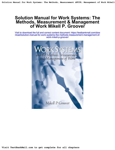 Download mikell p groover work systems solution manual Reader online is a convenient and frugal way to read mikell p groover work systems solution manual you love right from the comfort of your own home. Yes, there sites where you can get Reader "for free" but the ones listed below are clean from viruses and completely legal to use.