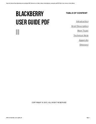 Best blackberry users guide pdf Download EBook Sites No Sign Up - As we know, Download EBook is a great way to spend leisure time. Almost every month, there are new Book being released and there are numerous brand new Book as well.